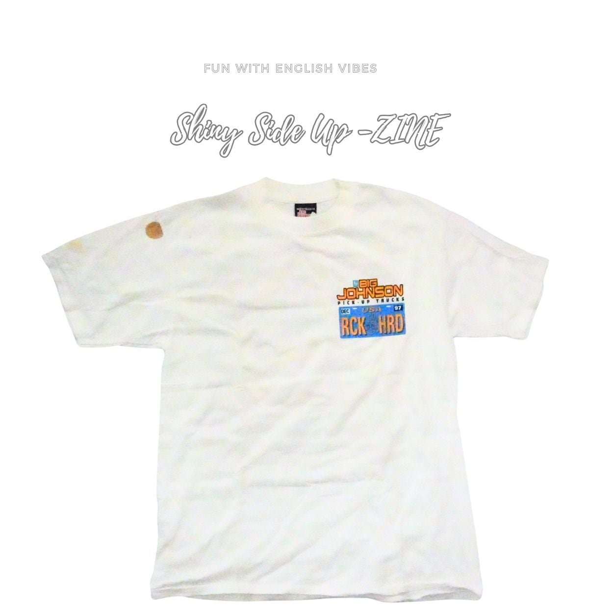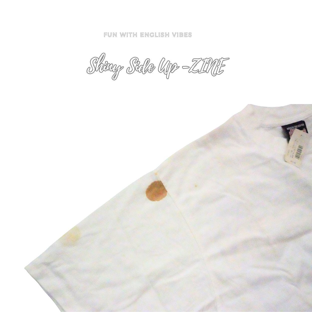 白いTシャツは経年化で、シミが目立ちます。